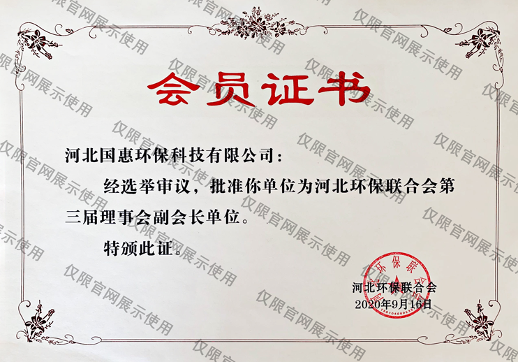河北省環(huán)境保護(hù)產(chǎn)業(yè)協(xié)會(huì)會(huì)員證書